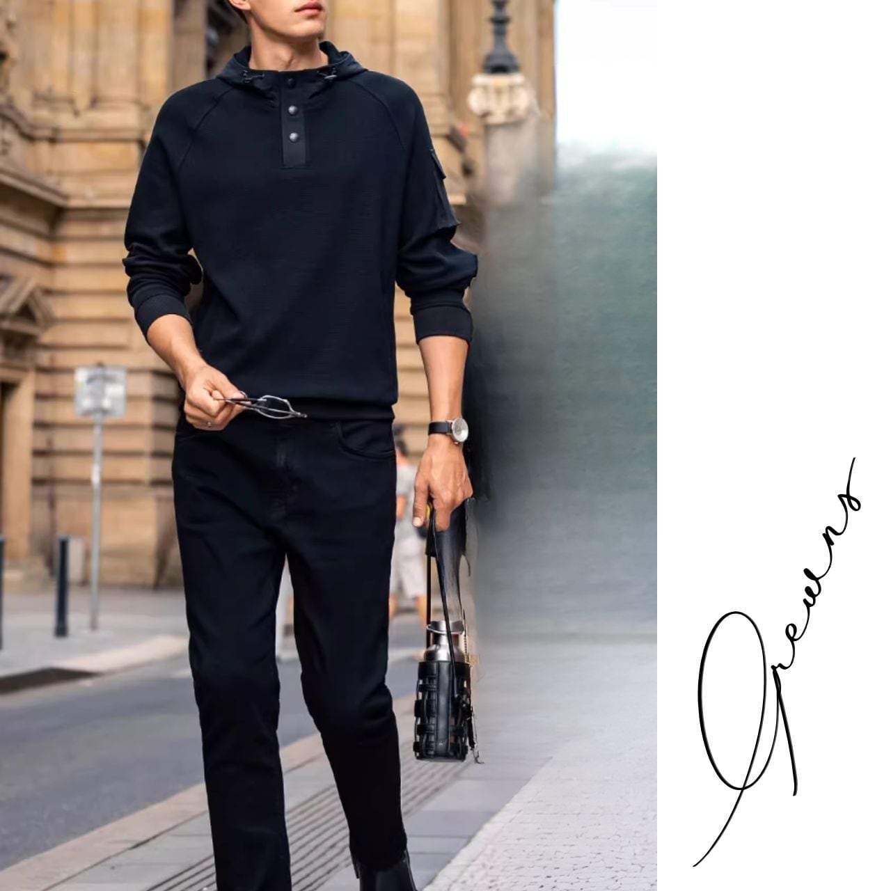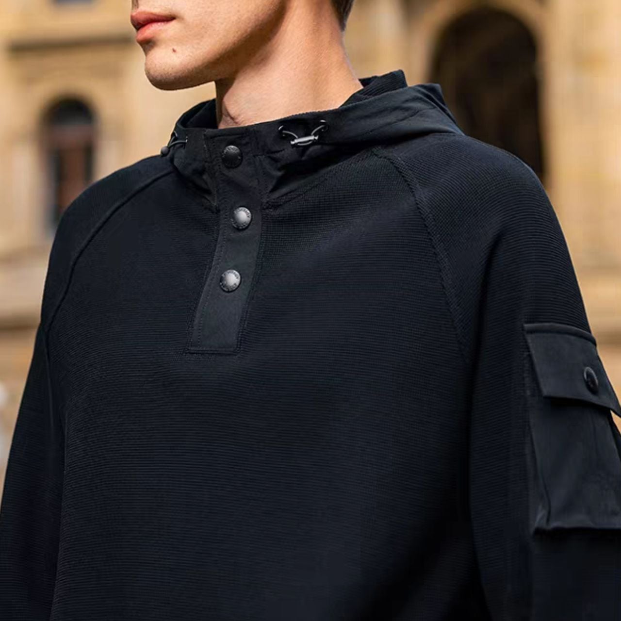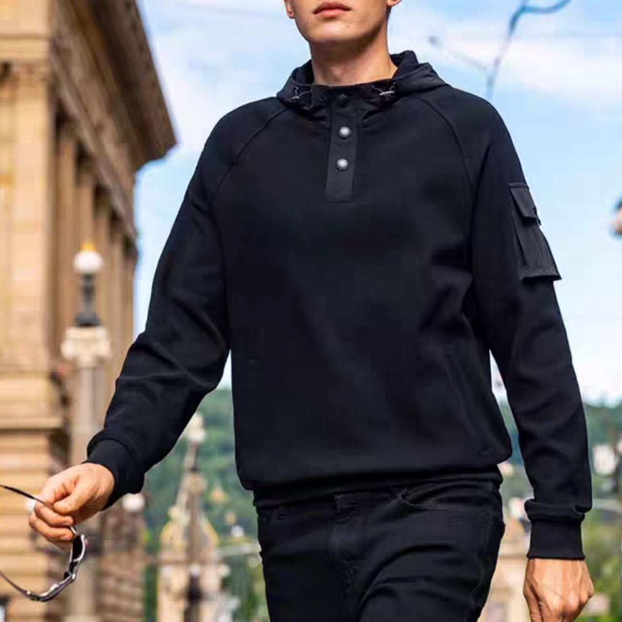 パッチポケット付きロングスリーブプルオーバーパーカー G098