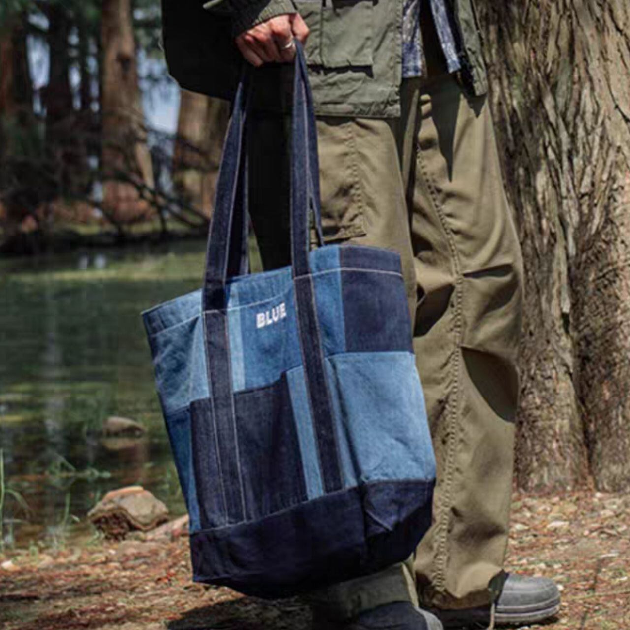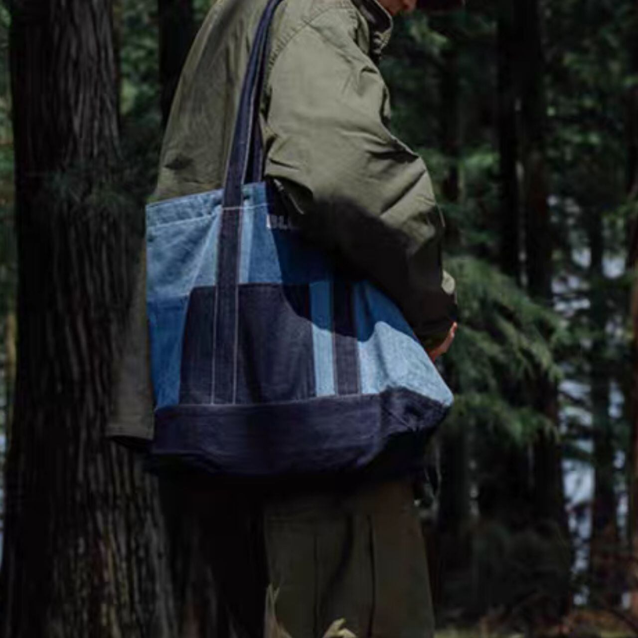 様々な表情を持つデニムを組み合わせ、一つのバッグに仕立てた。使い込むほどに深まる風合いと、唯一無二のパッチワークデザインが、あなたのスタイルを格上げする。