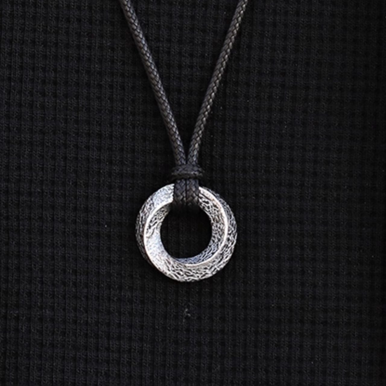 このペンダントは、削ぎ落とされたミニマルなデザインながら、確かな存在感を放つ。