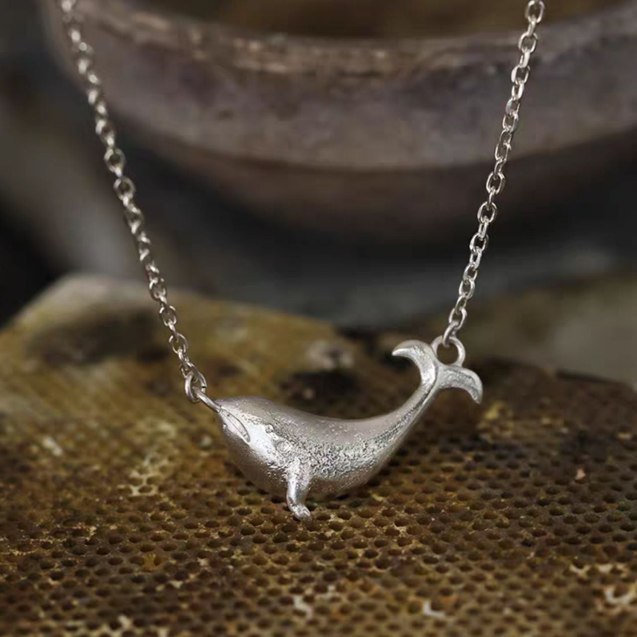 静謐な深海を思わせる、鯨モチーフの立体彫刻ネックレス。