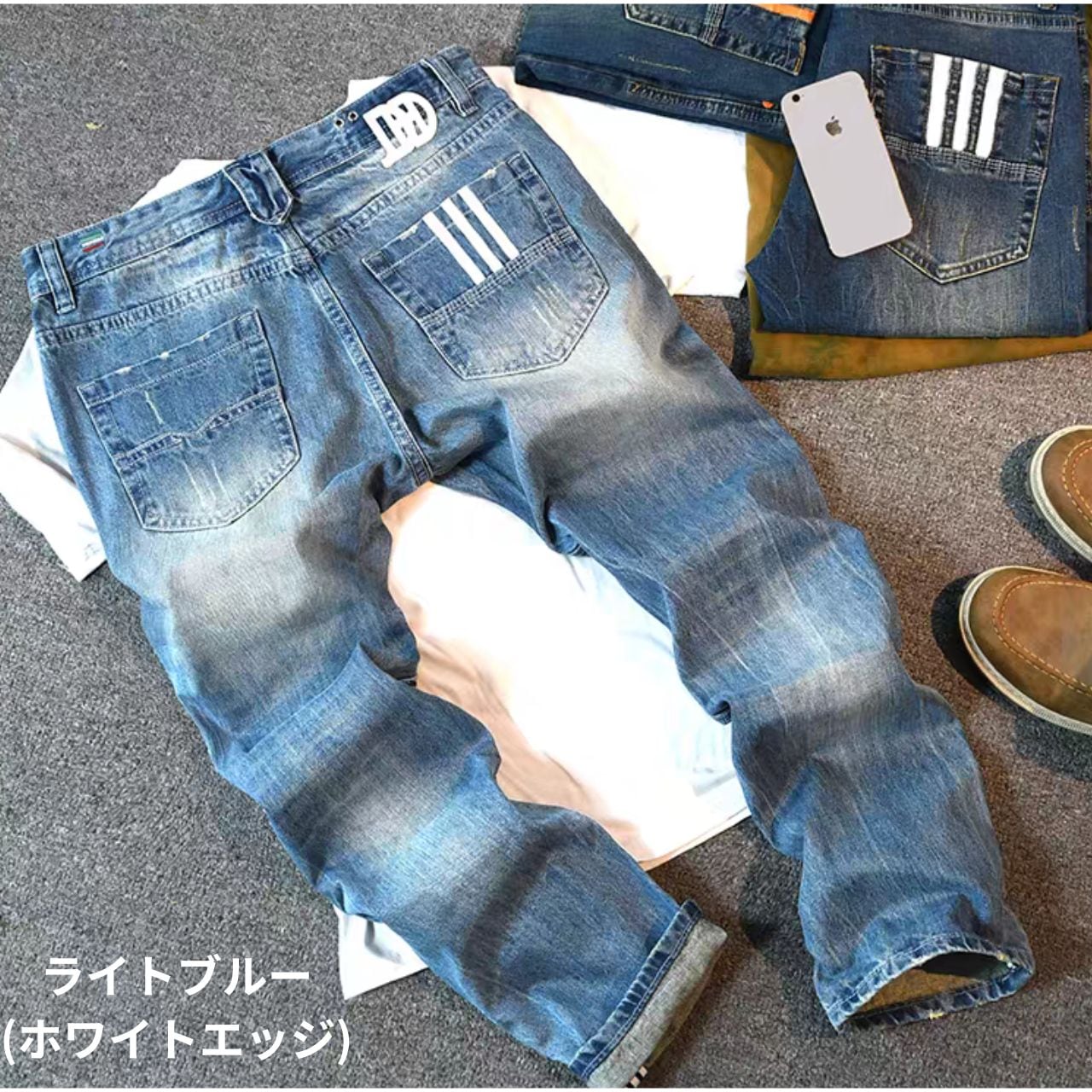 長年穿き込んだような絶妙な色落ちと、風合い。それは、あなたが歩んできた道、そしてこれから向かう冒険のストーリーを、雄弁に物語る。 バックポケットに配された大胆なラインとロゴは、後ろ姿で差をつける、大人の遊び心。 街を歩くときも、愛車のハンドルを握るときも、このディテールがあなたの洗練されたセンスを主張する。 Tシャツ一枚でもサマになる。 それが、このデニムの持つ揺るぎない魅力だ。 【サイズ】 28:ウエスト:71cm 裾幅:36cm 股下:102㎝ ヒップ:97cm 29:ウエスト:74cm 裾幅:36cm 股下:103㎝ ヒップ:99cm 30:ウエスト:76cm 裾幅:37cm 股下:104㎝ ヒップ:102cm 31:ウエスト:79cm 裾幅:37cm 股下:105㎝ ヒップ:104cm 32:ウエスト:81cm 裾幅:38cm 股下:106㎝ ヒップ:107cm 33:ウエスト:84cm 裾幅:39cm 股下:107㎝ ヒップ:109cm 34:ウエスト:86cm 裾幅:40cm 股下:108㎝ ヒップ:112cm 36:ウエスト:91cm 裾幅:41cm 股下:110㎝ ヒップ:117cm 38:ウエスト:97cm 裾幅:42cm 股下:112㎝ ヒップ:122cm 40:ウエスト:102cm 裾幅:43cm 股下:114㎝ ヒップ:127cm ※海外製品のため、1-3cm程の誤差がある場合がございます。 【カラー数】 3col. 【カラー】 ライトブルー(ホワイトエッジ) ダークブルー(ホワイトエッジ) ノスタルジックブルー(オレンジエッジ) 【素材】 デニム 【お届けについて】 こちらの商品は海外店舗より直接発送となる為、 ご入金から発送まで1~4週間前後のお時間をいただいております。 【注意事項】 ・当店では流動性の高い商品を扱っているため、タイミングによっては 商品在庫切れにより注文キャンセルとさせていただく恐れもございますので、予めご了承くださいませ。 ・こちらは輸入品となります。日本製とは検品基準が異なる為、新品未使用品でもごくわずかな汚れや傷、ほこりの不着がある場合も良品でございます。 ・商品の色味は、お使いのデバイスの画面によって実物と若干異なる場合がございます。 ・イメージ違いやサイズ交換等、お客さまご都合による交換、返品は対応出来かねます。 ———————————— ご購入前にこちらをお読みください https://grewns.official.ec/about ————————————
