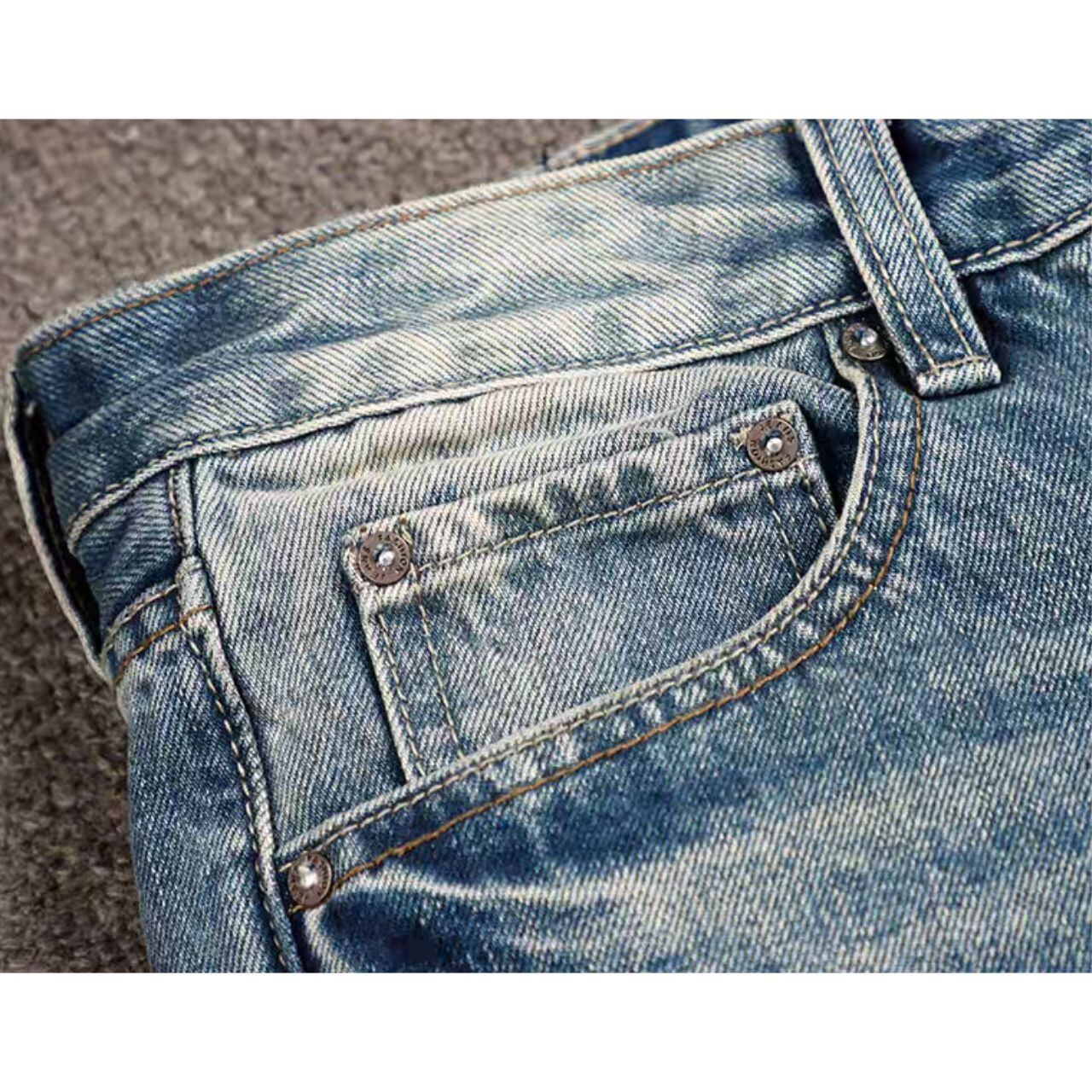 幾多の冒険を乗り越えてきたかのような、リアルなダメージ加工と大胆なパッチワークが、あなたの無骨な男らしさを最高に引き出す。 長年穿き込んだような絶妙な色落ちは、大人の余裕と遊び心を主張する。 レザーライダースやシンプルなTシャツと合わせるだけで、西海岸の自由な空気を纏った、リッチなストリートスタイルが完成するだろう。 【サイズ】 28:ウエスト:71cm 裾幅:40cm 股下:101㎝ ヒップ:96cm 29:ウエスト:73cm 裾幅:41cm 股下:102㎝ ヒップ:99cm 30:ウエスト:76cm 裾幅:42cm 股下:103㎝ ヒップ:102cm 31:ウエスト:78cm 裾幅:42cm 股下:104㎝ ヒップ:104cm 32:ウエスト:81cm 裾幅:43cm 股下:105㎝ ヒップ:107cm 33:ウエスト:83cm 裾幅:44cm 股下:106㎝ ヒップ:109cm 34:ウエスト:86cm 裾幅:45cm 股下:107㎝ ヒップ:112cm 36:ウエスト:91cm 裾幅:46cm 股下:108㎝ ヒップ:117cm 38:ウエスト:96cm 裾幅:48cm 股下:109㎝ ヒップ:122cm ※海外製品のため、1-3cm程の誤差がある場合がございます。 【カラー数】 1col. 【カラー】 ウオッシュブルー 【素材】 デニム 【お届けについて】 こちらの商品は海外店舗より直接発送となる為、 ご入金から発送まで1~4週間前後のお時間をいただいております。 【注意事項】 ・当店では流動性の高い商品を扱っているため、タイミングによっては 商品在庫切れにより注文キャンセルとさせていただく恐れもございますので、予めご了承くださいませ。 ・こちらは輸入品となります。日本製とは検品基準が異なる為、新品未使用品でもごくわずかな汚れや傷、ほこりの不着がある場合も良品でございます。 ・商品の色味は、お使いのデバイスの画面によって実物と若干異なる場合がございます。 ・イメージ違いやサイズ交換等、お客さまご都合による交換、返品は対応出来かねます。 ———————————— ご購入前にこちらをお読みください https://grewns.official.ec/about ————————————