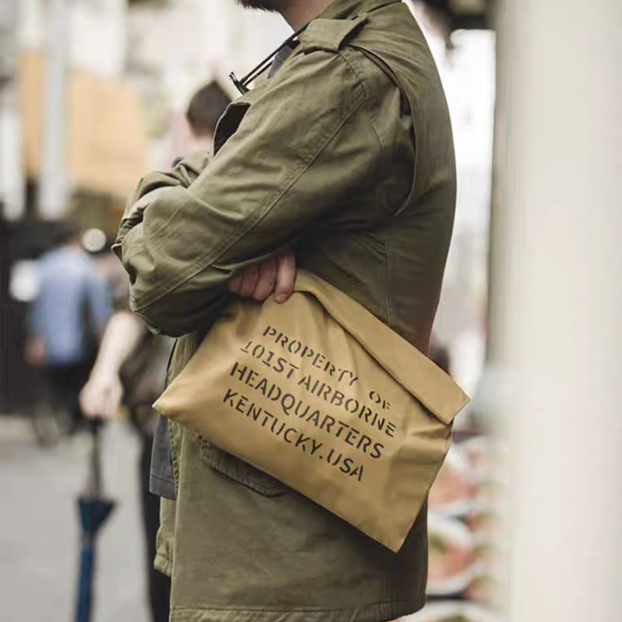 西海岸リュクスのアクセントとしてラフなデニムやスウェットスタイルにこのクラッチを合わせるだけで、ミリタリー由来の無骨さと大人の遊び心が加わり、一気にスタイルが引き締まります。