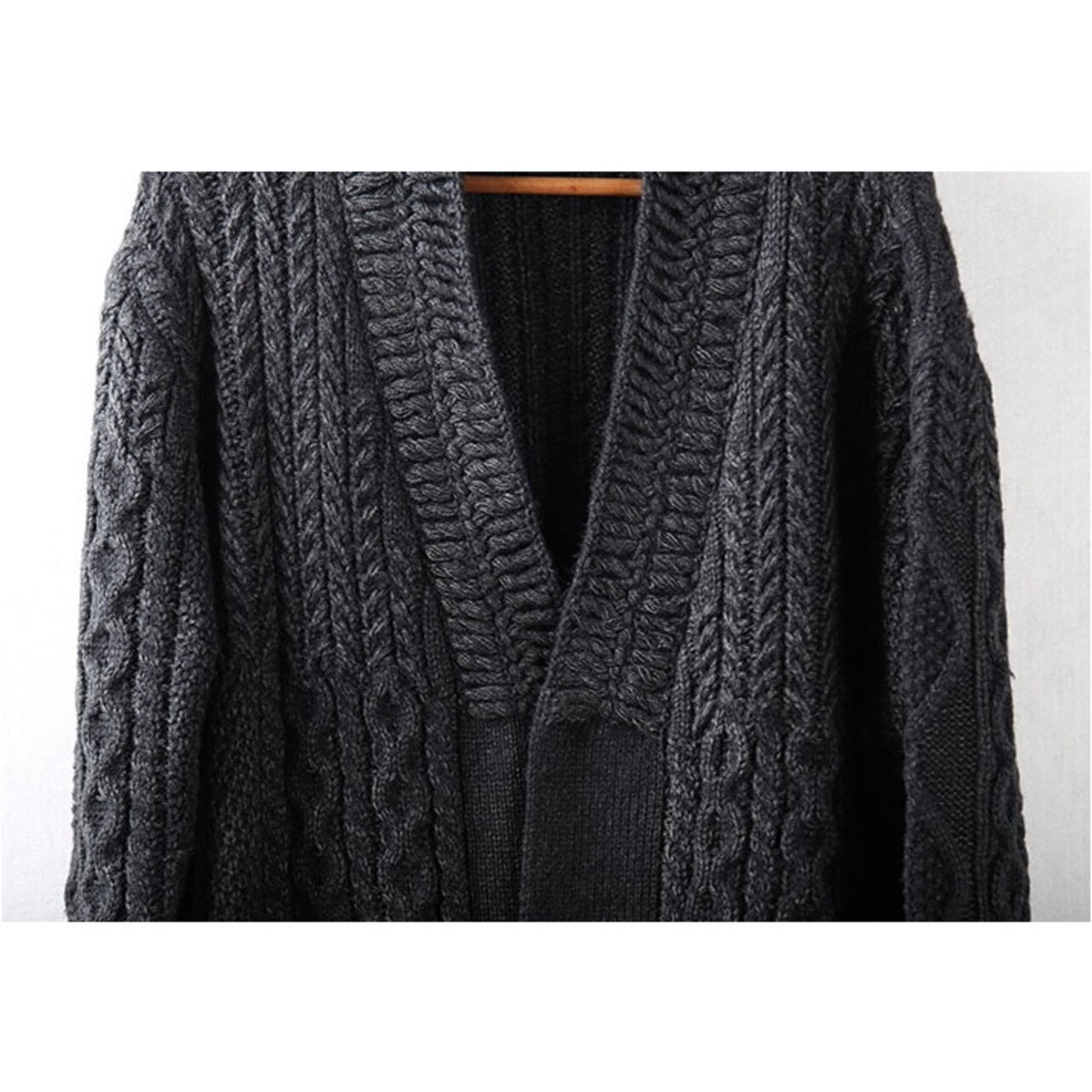 無骨な太い毛糸で編まれたケーブル模様は、タフな男の装いにクラシックな品格をプラス。