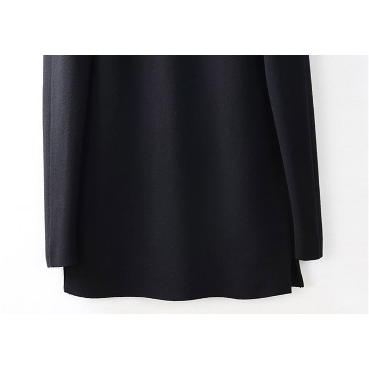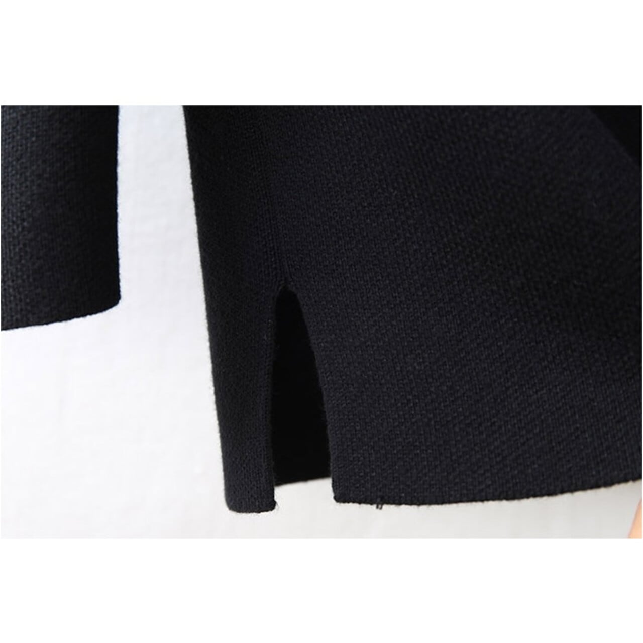 ロング丈のゆったりとしたデザインでありながら、異素材のディテールとブラックカラーがシックな緊張感を保ちます。