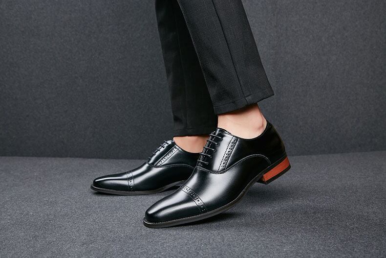 洗練されたストレートチップのデザインが、足元を上品に演出します。