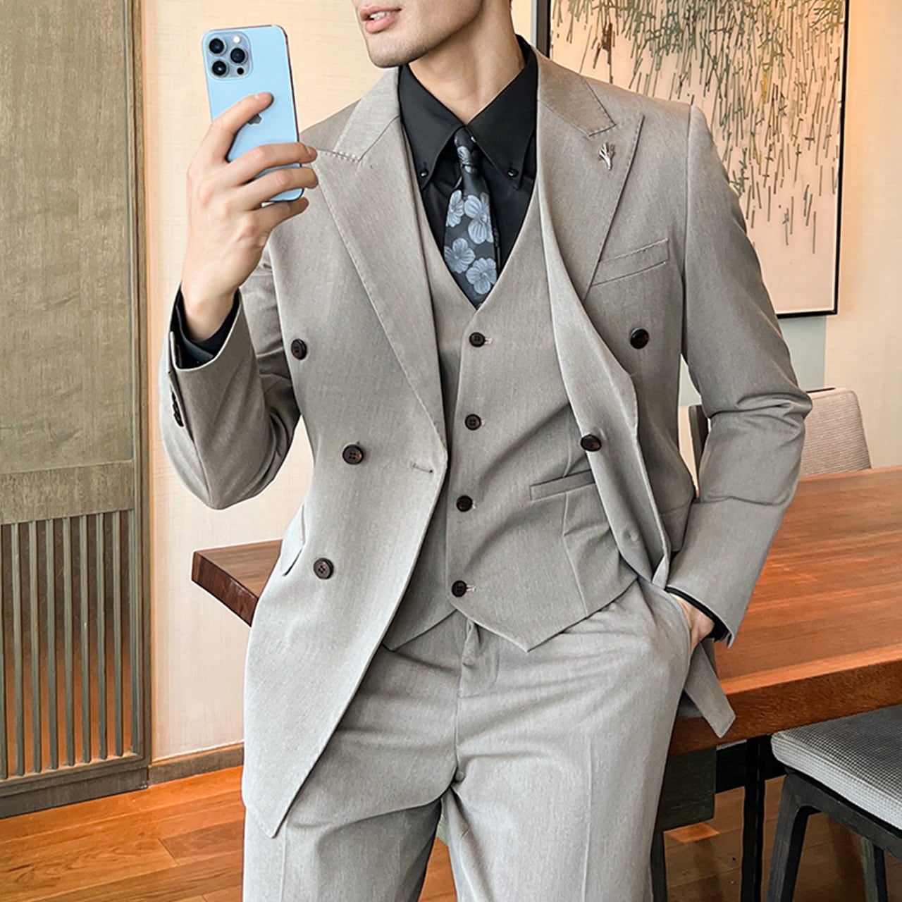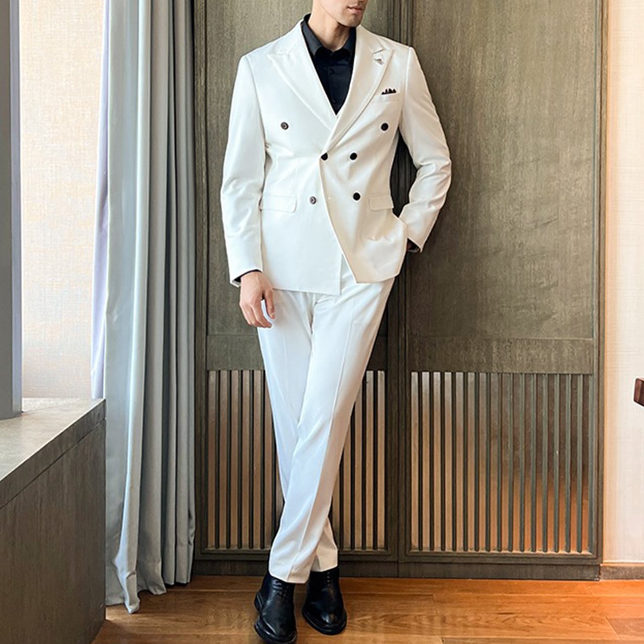 都会という名の戦場を生きる男たちへ。 このツーピーススーツは、あなたを最高に輝かせるユニフォームだ。 洗練されたシルエットと、重厚なベストが織りなす圧倒的な存在感。 それは、あなたの揺るぎない自信と、知的な色気を物語る。 仕事も遊びもスマートにこなす、大人のための選択がここにある。 ※G014のスリーピースと同デザイン、ツーピーススーツバージョンです 【JACKET SIZE】 S:胸囲:88cm 袖丈:59cm 肩幅:41cm 着丈:62cm M:胸囲:92cm 袖丈:60cm 肩幅:42cm 着丈:64cm L:胸囲:96cm 袖丈:61cm 肩幅:43cm 着丈:66cm XL:胸囲:100cm 袖丈:62cm 肩幅:44cm 着丈:68cm 2XL:胸囲:104cm 袖丈:63cm 肩幅:45cm 着丈:70cm 3XL:胸囲:108cm 袖丈:64cm 肩幅:47cm 着丈:72cm 4XL:胸囲:112cm 袖丈:65cm 肩幅:48cm 着丈:74cm 5XL:胸囲:116cm 袖丈:66cm 肩幅:49cm 着丈:76cm 6XL:胸囲:120cm 袖丈:67cm 肩幅:50cm 着丈:78cm 7XL:胸囲:124cm 袖丈:68cm 肩幅:51cm 着丈:80cm 【PANTS SIZE】 29:ウエスト:73cm ヒップ:92cm わたり幅:54cm 裾幅:30cm 着丈:98cm 30:ウエスト:77cm ヒップ:93cm わたり幅:55cm 裾幅:31cm 着丈:99cm 31:ウエスト:80cm ヒップ:96cm わたり幅:56cm 裾幅:32cm 着丈:99cm 32:ウエスト:83cm ヒップ:100cm わたり幅:58cm 裾幅:33cm 着丈:100cm 33:ウエスト:86cm ヒップ:104cm わたり幅:60cm 裾幅:34cm 着丈:101cm 34:ウエスト:90cm ヒップ:108cm わたり幅:62cm 裾幅:35cm 着丈:103cm 36:ウエスト:96cm ヒップ:112cm わたり幅:64cm 裾幅:36cm 着丈:104cm 38:ウエスト:103cm ヒップ:116cm わたり幅:66cm 裾幅:37cm 着丈:105cm 40:ウエスト:110cm ヒップ:120cm わたり幅:68cm 裾幅:38cm 着丈:106cm 42:ウエスト:117cm ヒップ:124cm わたり幅:70cm 裾幅:40cm 着丈:107cm 【カラー数】 8col. 【カラー】 白 ベージュ ライトブラウン ブラウン ライトグレー ダークグレー 紺 黒 ※海外製品のため、1-3cm程の誤差がある場合がございます。 【モデル着用サイズ】 身長184cm、体重80㎏ 【素材】 ポリエステル繊維68%、ビスコース繊維29%、ポリウレタン弾性繊維3% 【お届けについて】 こちらの商品は海外店舗より直接発送となる為、 ご入金から発送まで2~4週間前後のお時間をいただいております。 【注意事項】 ・タイミングによっては 商品在庫切れにより 注文キャンセルとさせていただく恐れもございますので、予めご了承くださいませ。 ・こちらは輸入品となります。日本製とは検品基準が異なる為、 新品未使用品でもごくわずかな汚れや傷、ほこりの不着がある場合も良品でございます。 ・商品の色味は、お使いのデバイスの画面によって実物と若干異なる場合がございます。 ・イメージ違いやサイズ交換等、お客さまご都合による交換、返品は対応出来かねます。 ———————————— ご購入前にこちらをお読みください https://grewns.official.ec//about ————————————