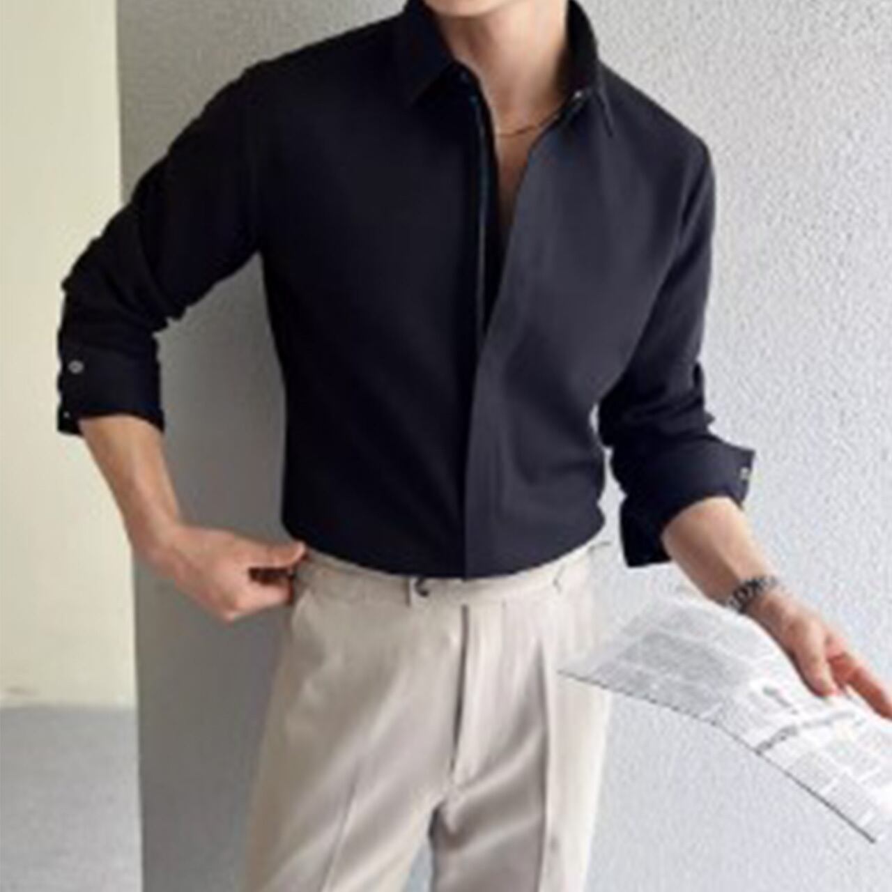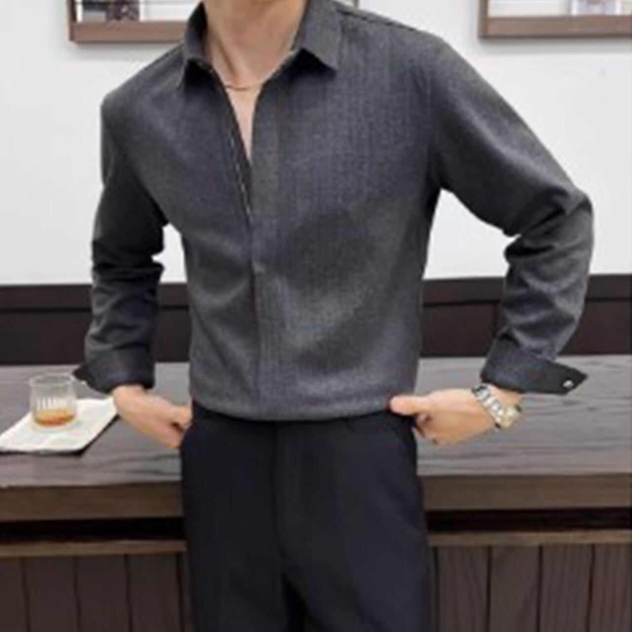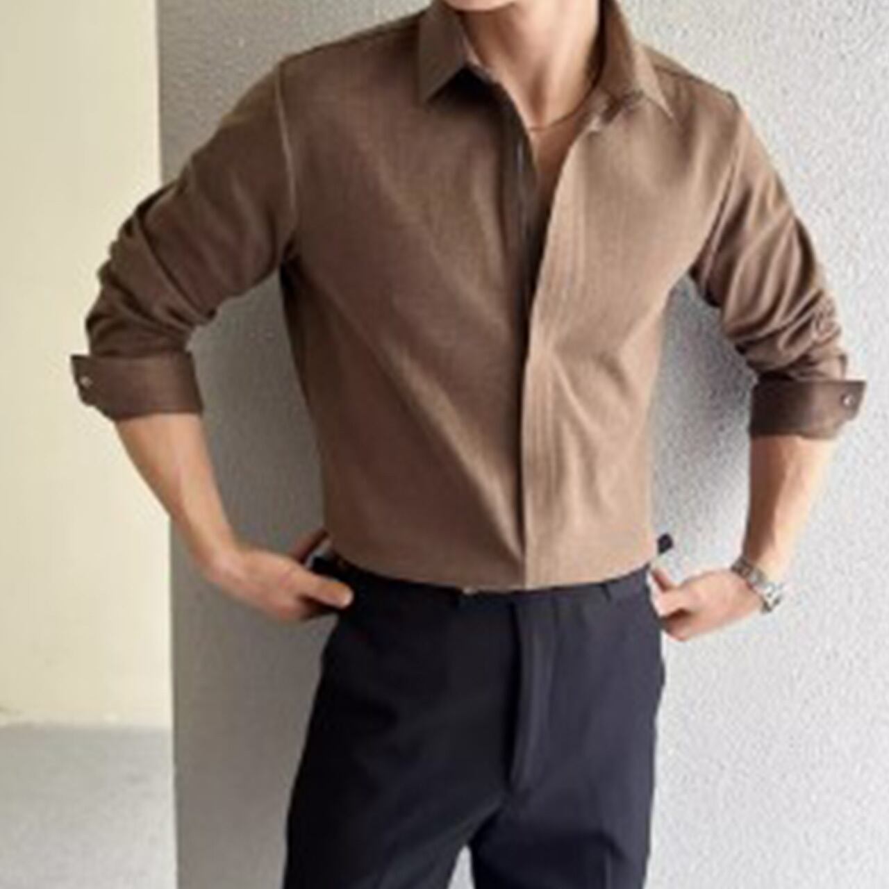 洗練されたミニマルデザインが魅力のプレーンシャツ。