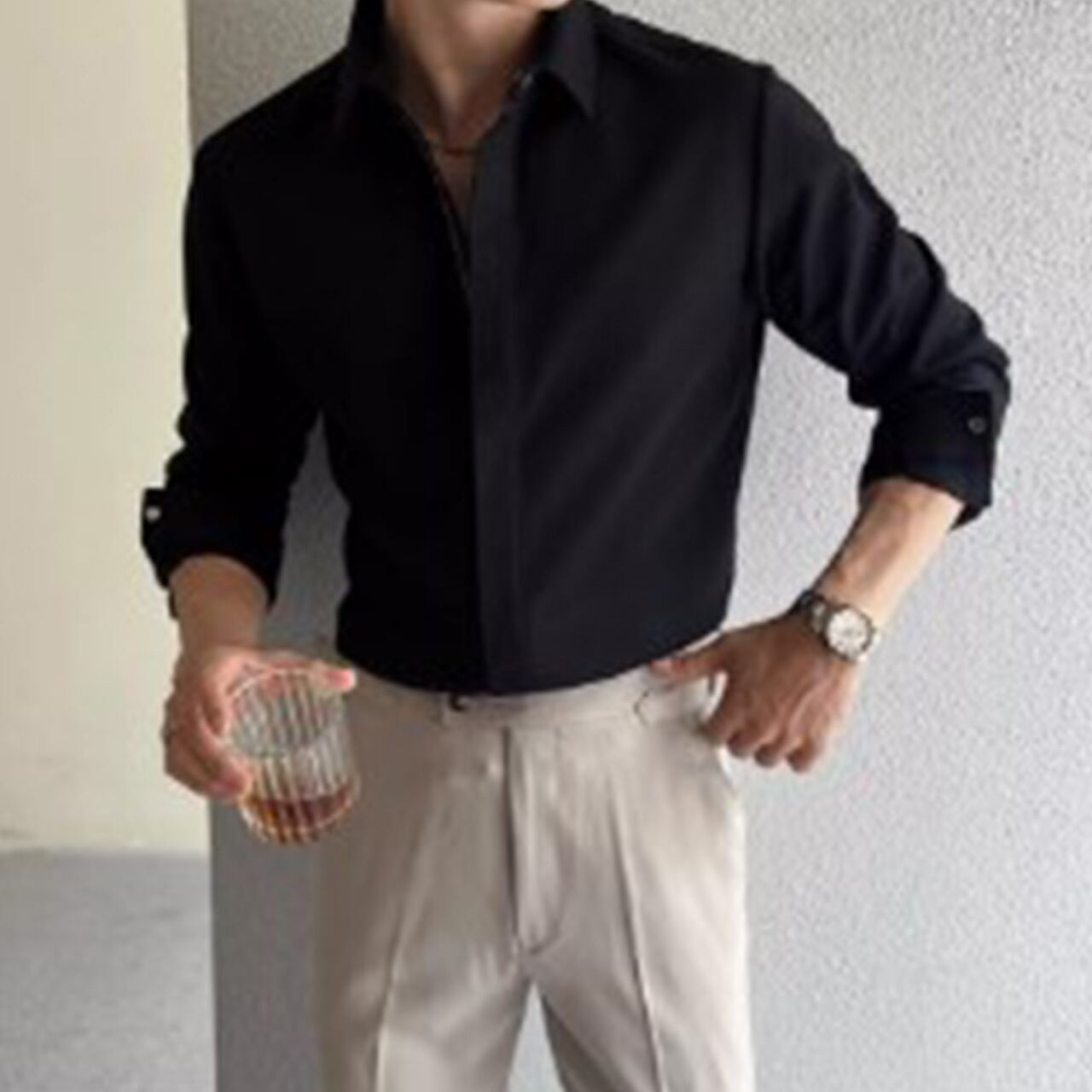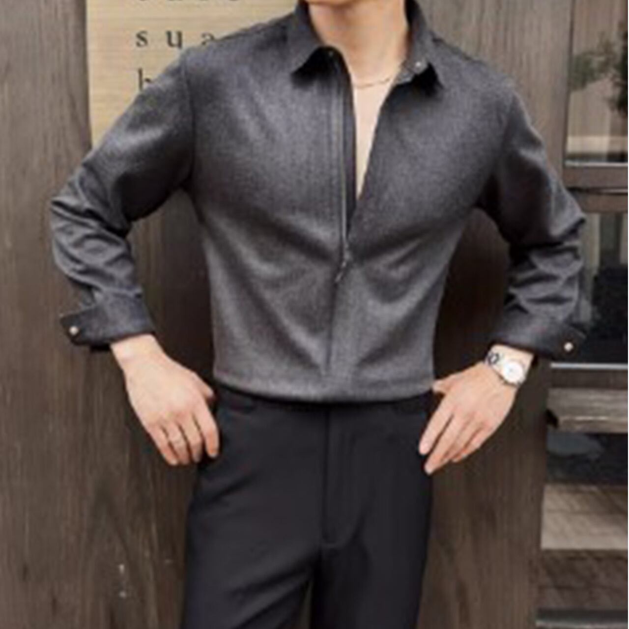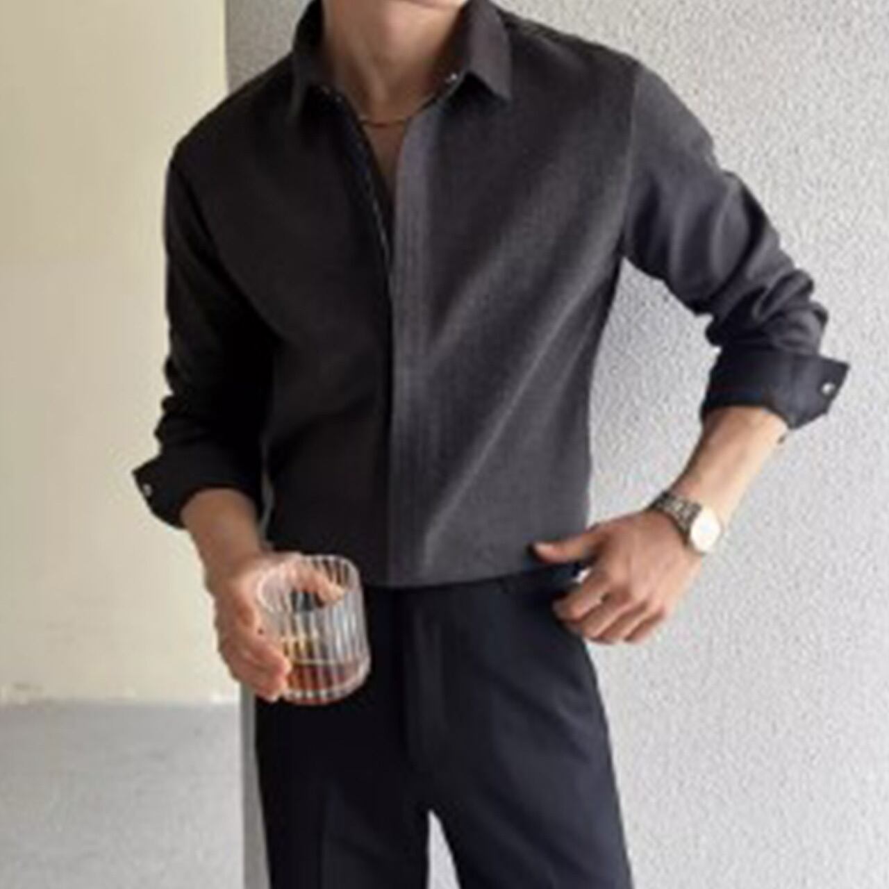 洗練されたミニマルデザインが魅力のプレーンシャツ。