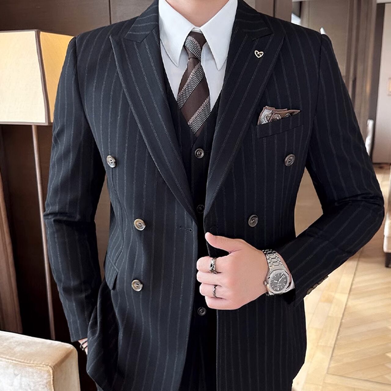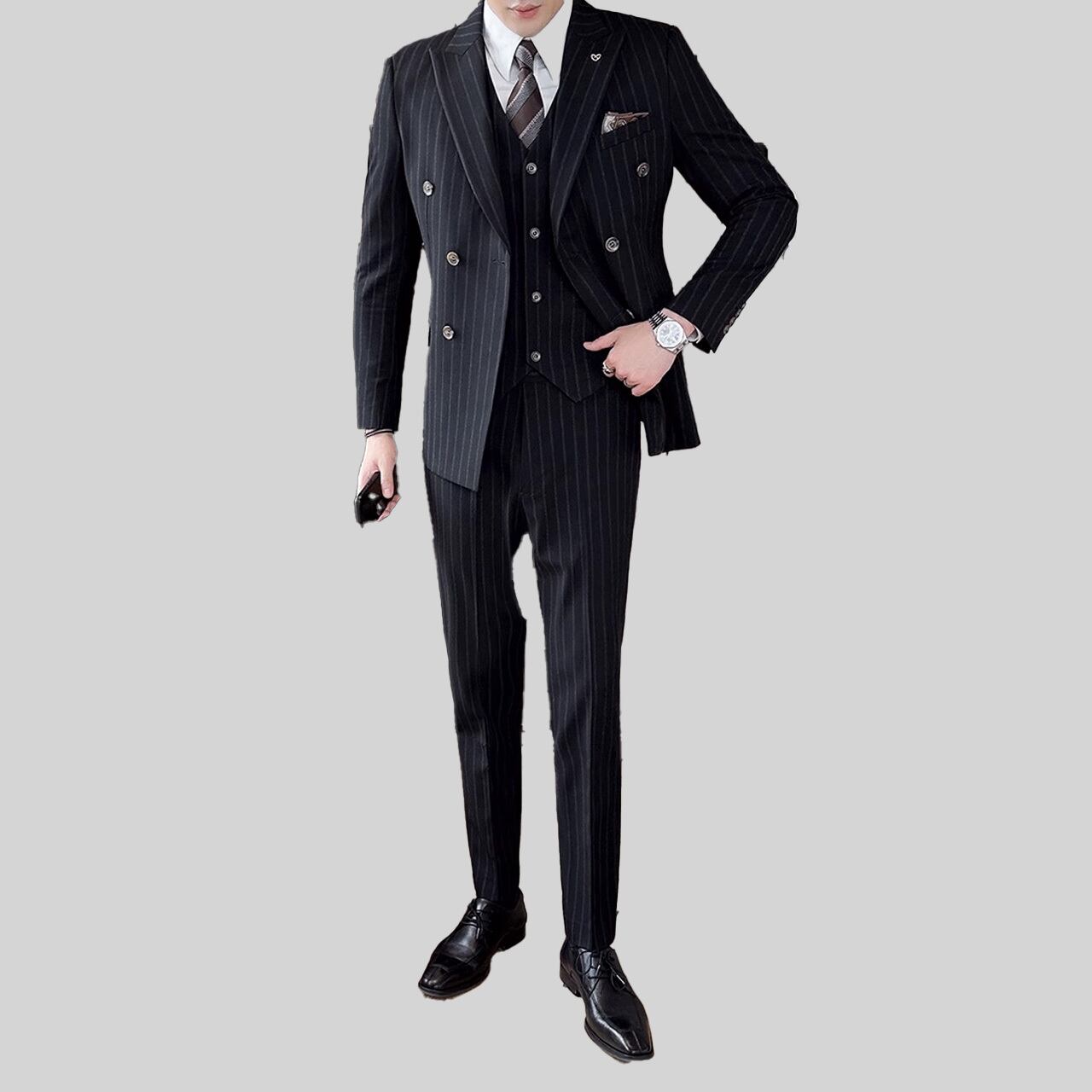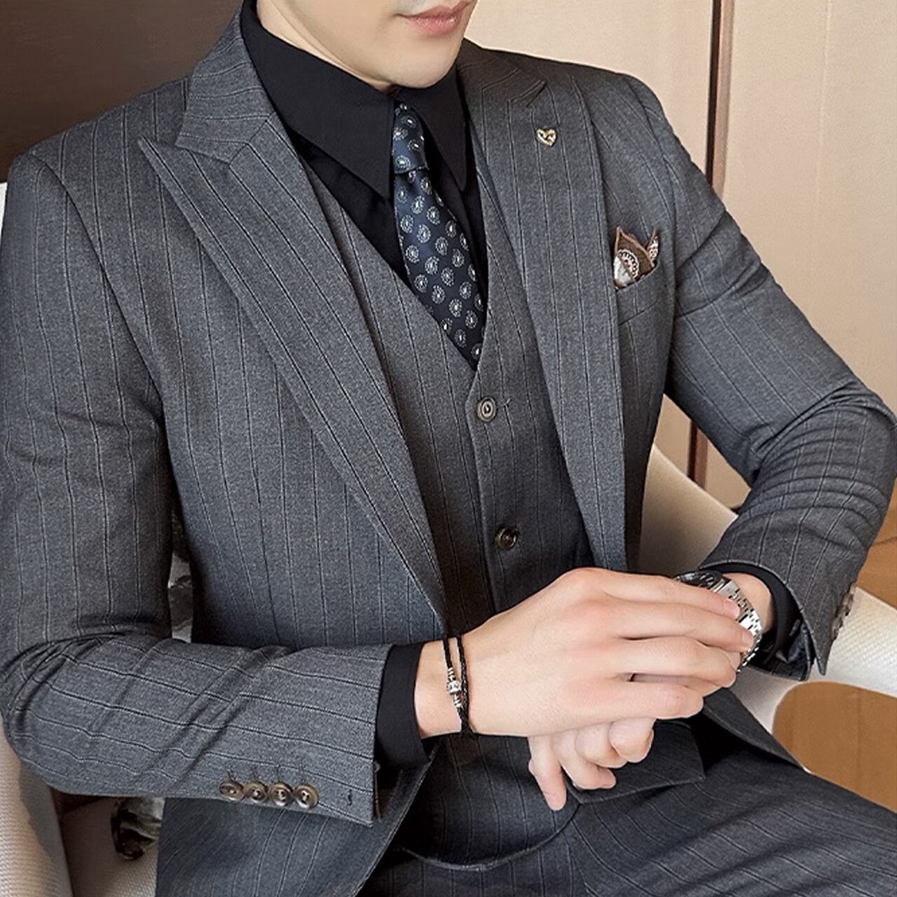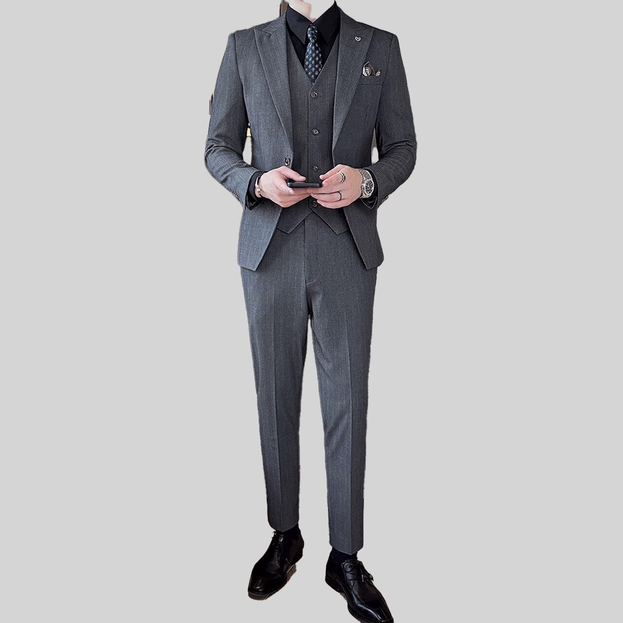 洗練されたシルエットが魅力のスリーピーススーツ。