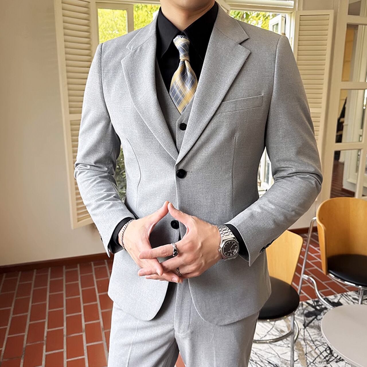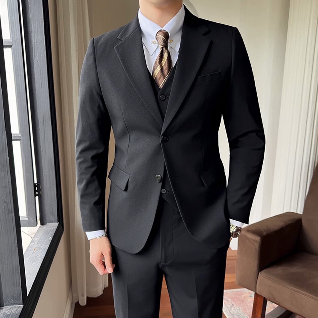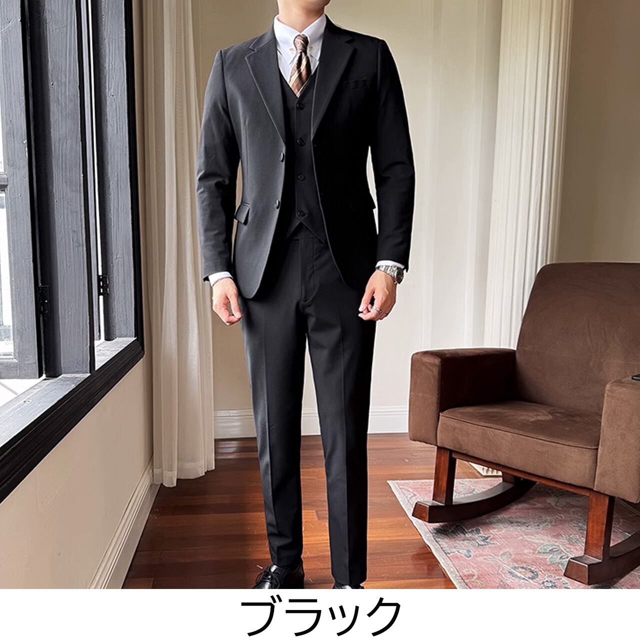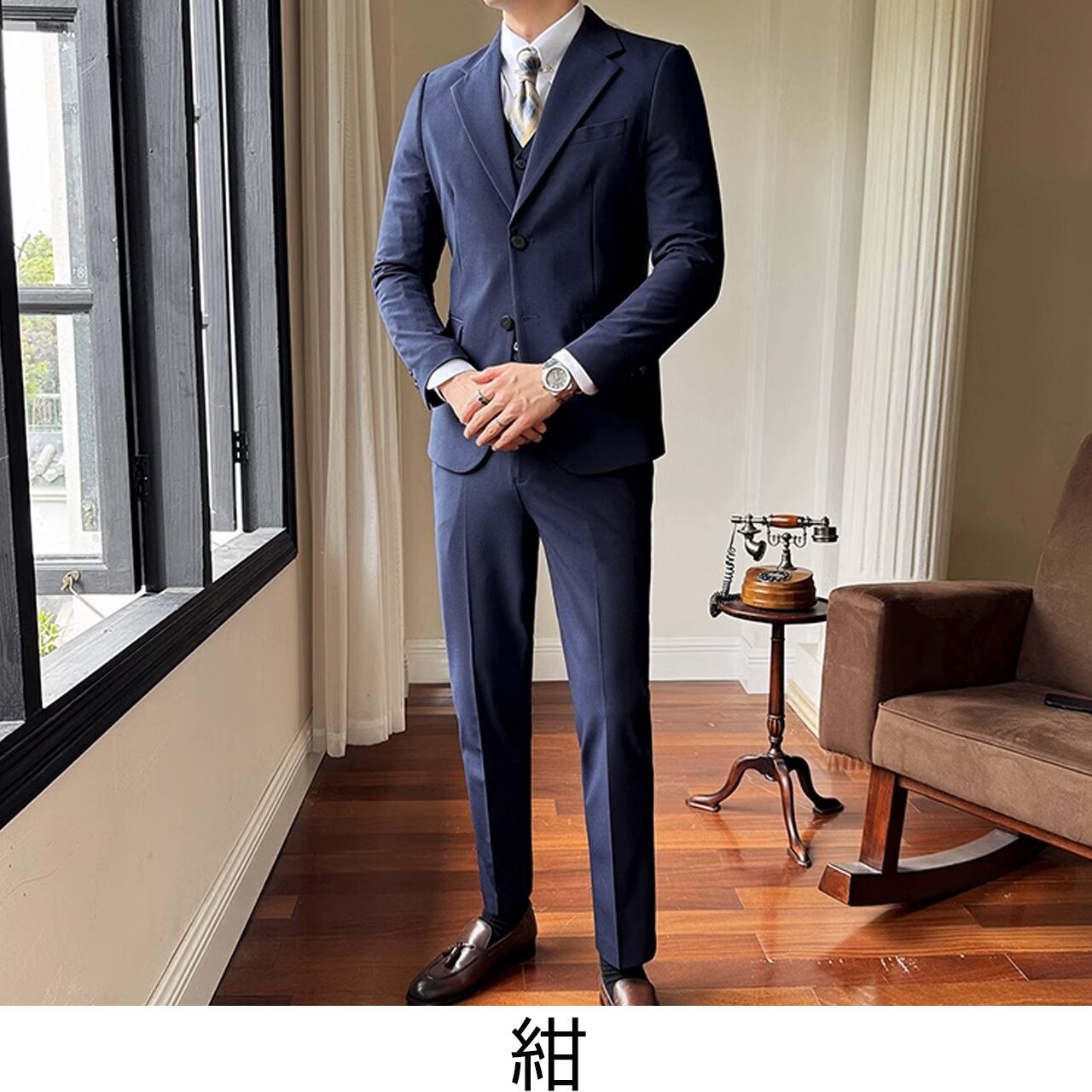シングルブレストノッチドラペルセンターベントスリーピーススーツ G058