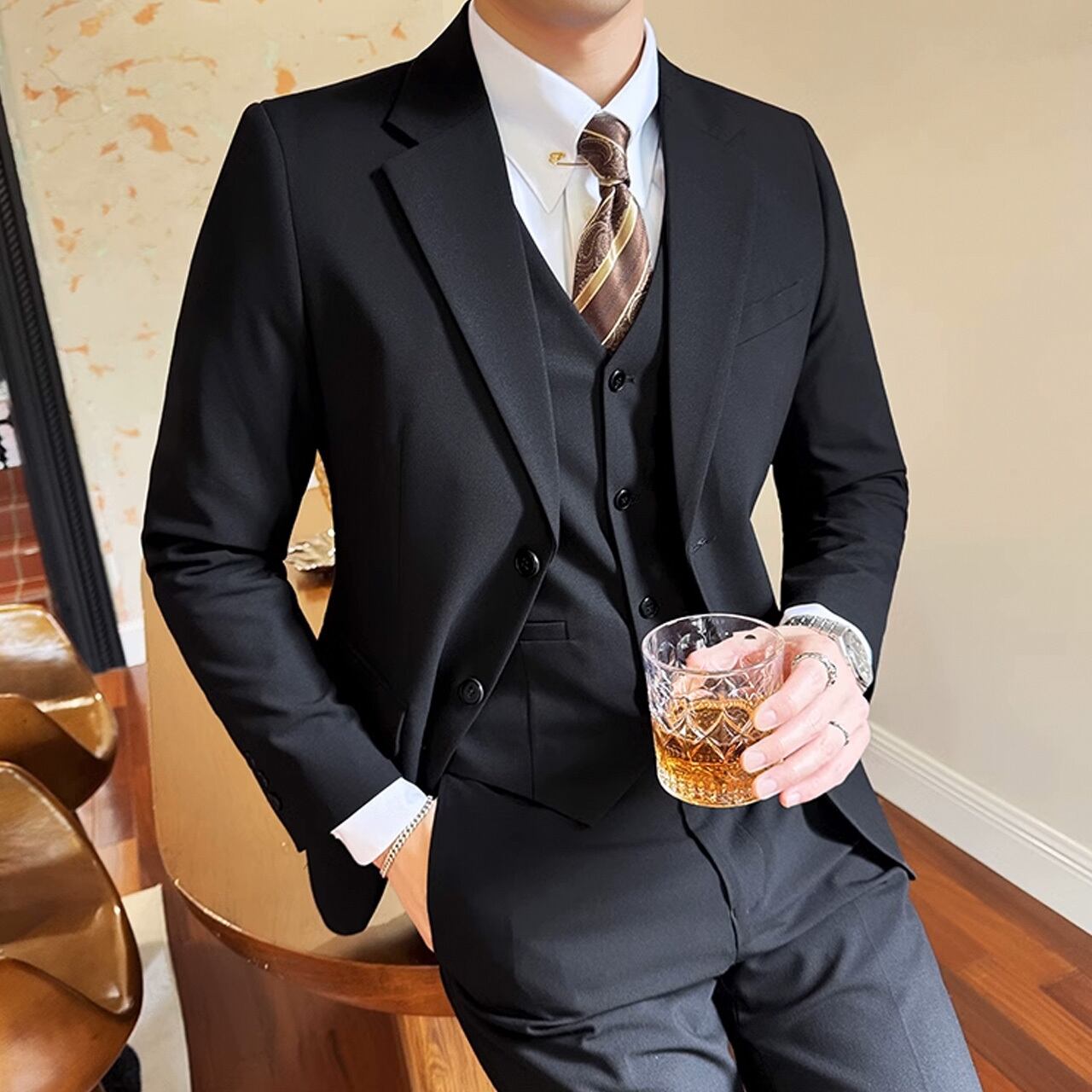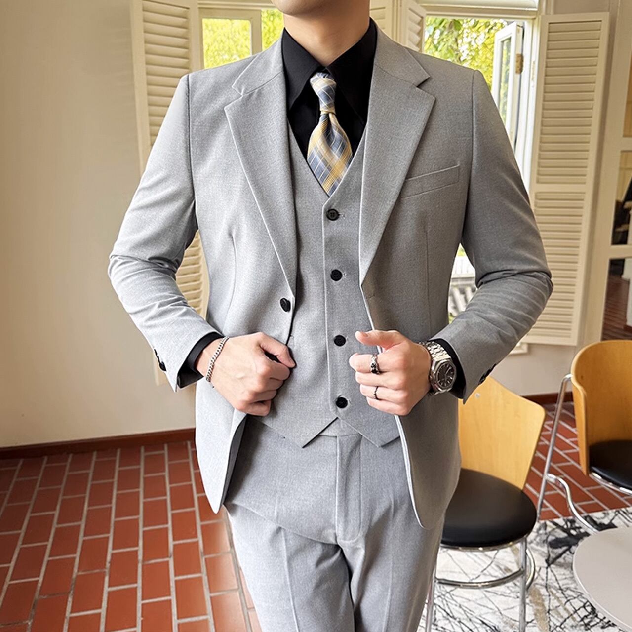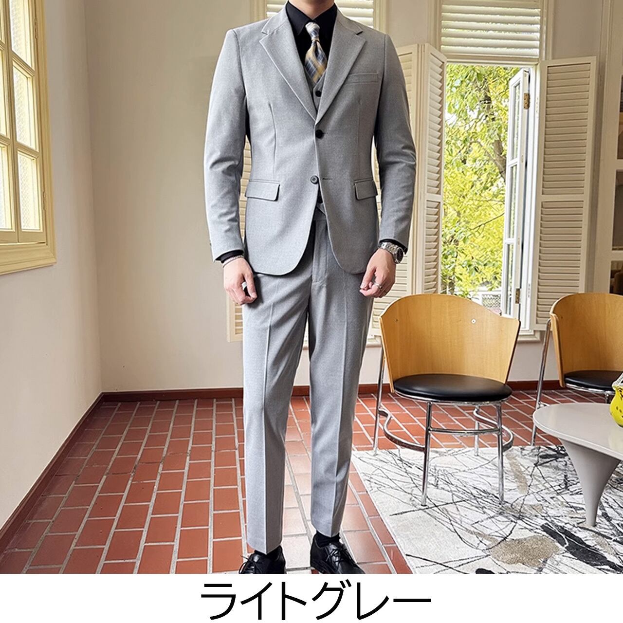 シングルブレストノッチドラペルセンターベントスリーピーススーツ G058