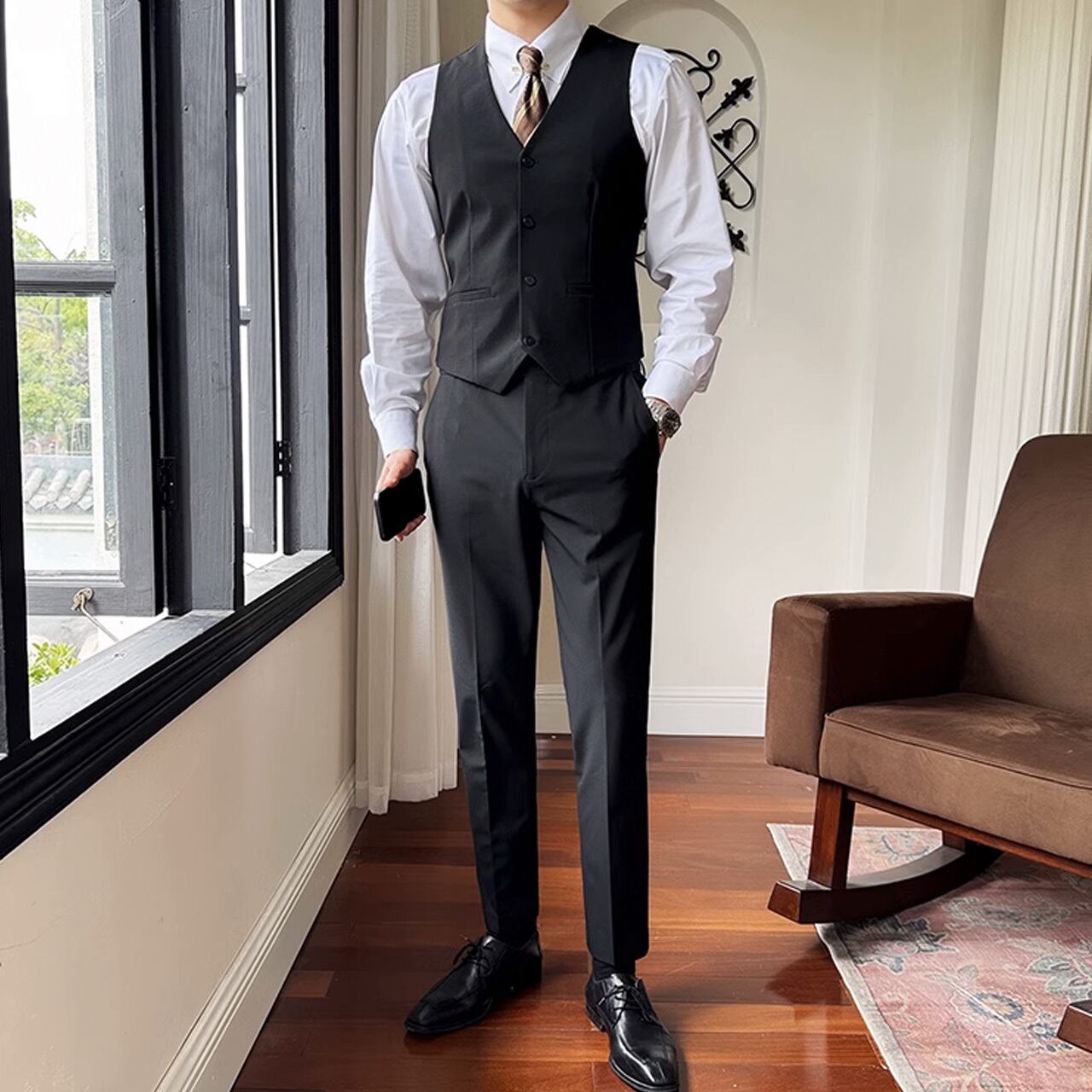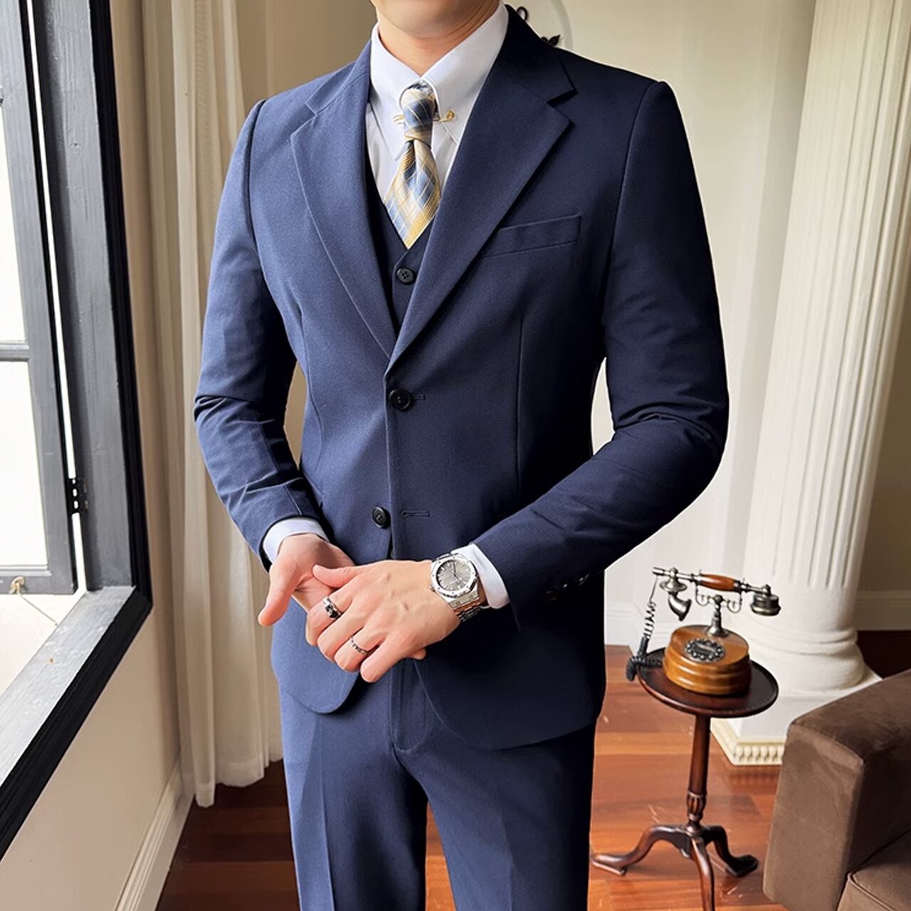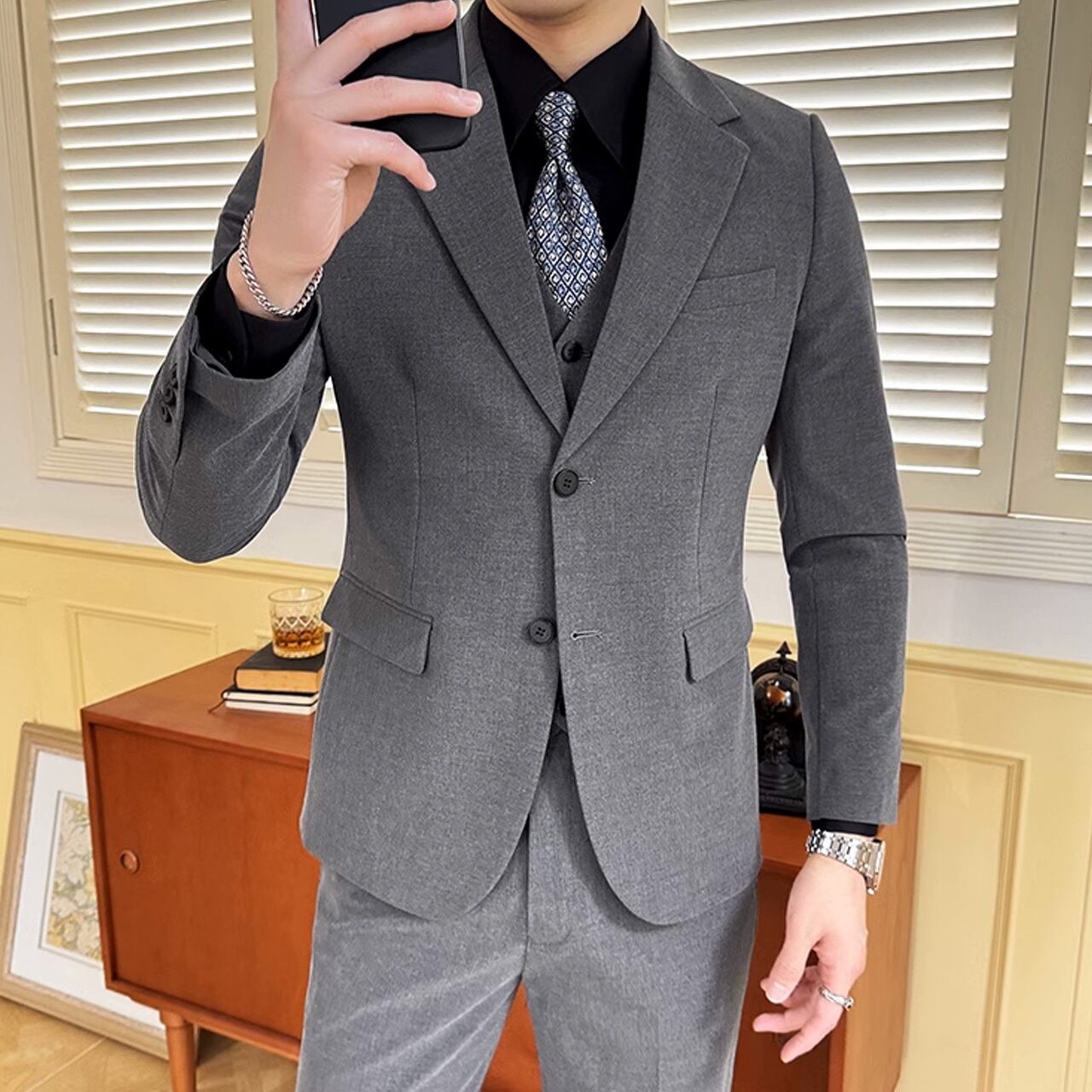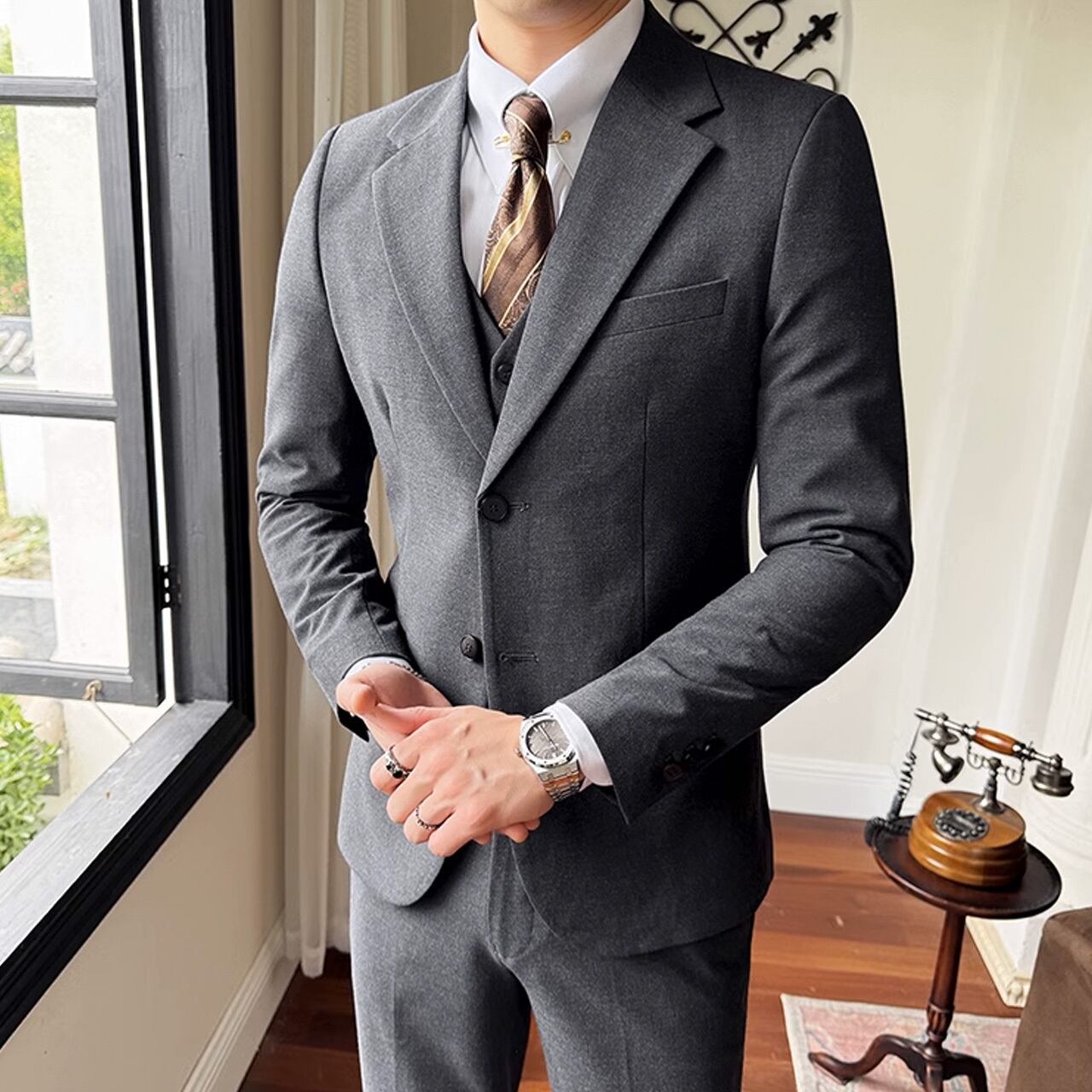 シングルブレストノッチドラペルセンターベントスリーピーススーツ G058